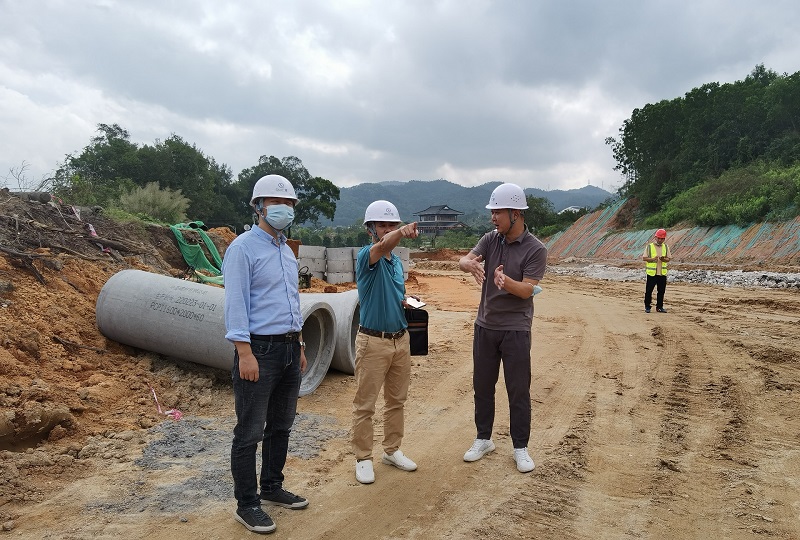 会议结束后,古国敬专家前往施工现场,对项目开展实地考察,针对现场的洒水降尘、七牌二图、道路硬化、文明广告、裸土覆盖、临时用电等安全文明施工情况进行了详细的交流及指导。